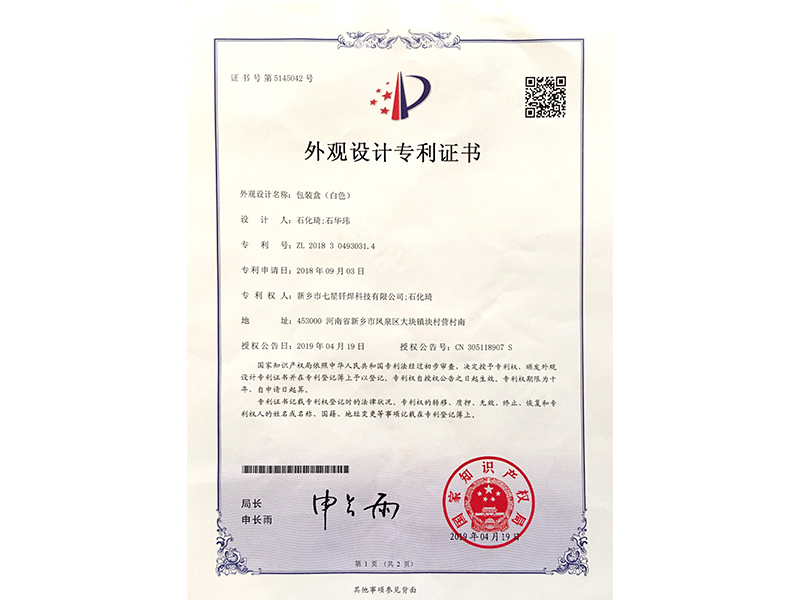 外觀設(shè)計(jì)專利證書(shū)-包裝盒(白色)